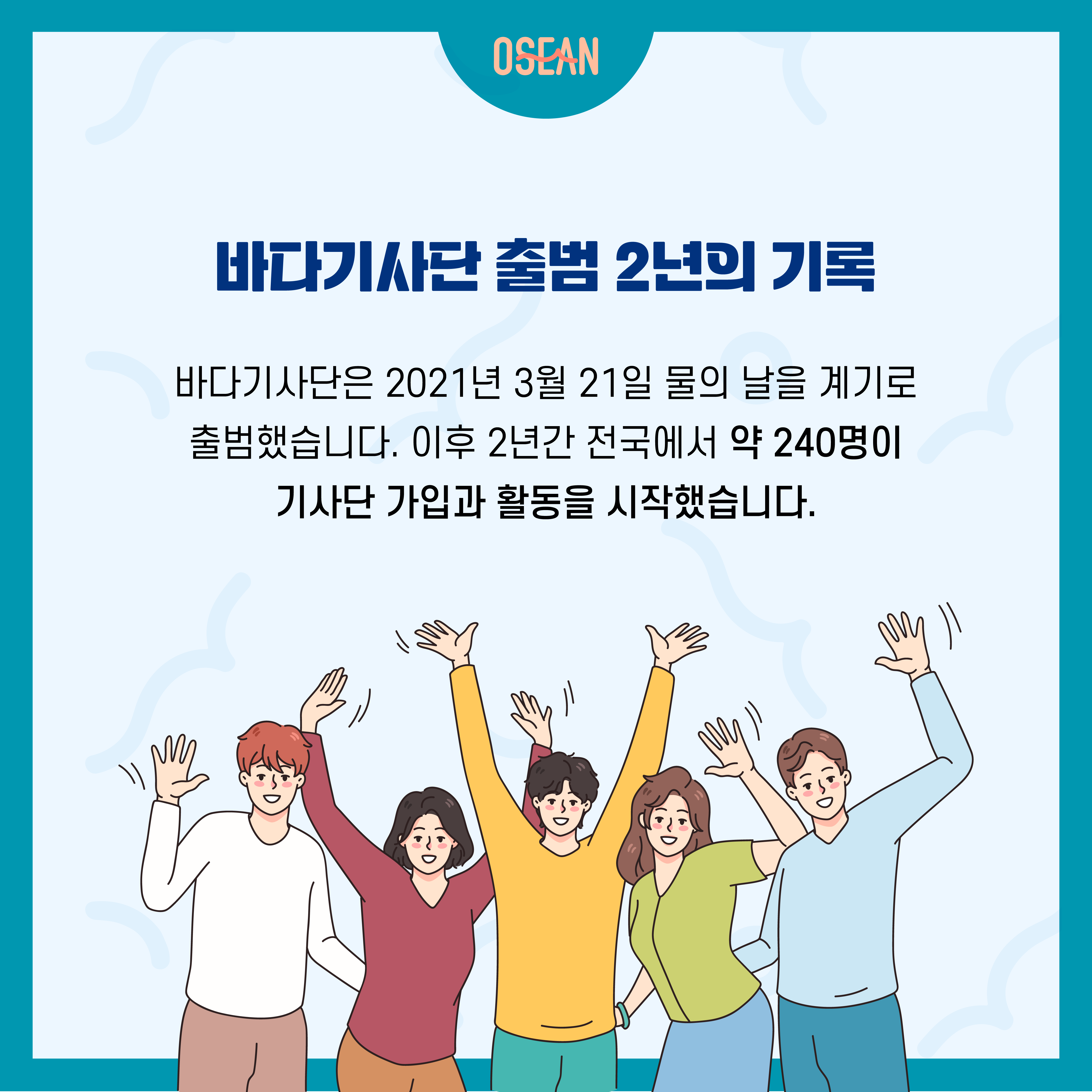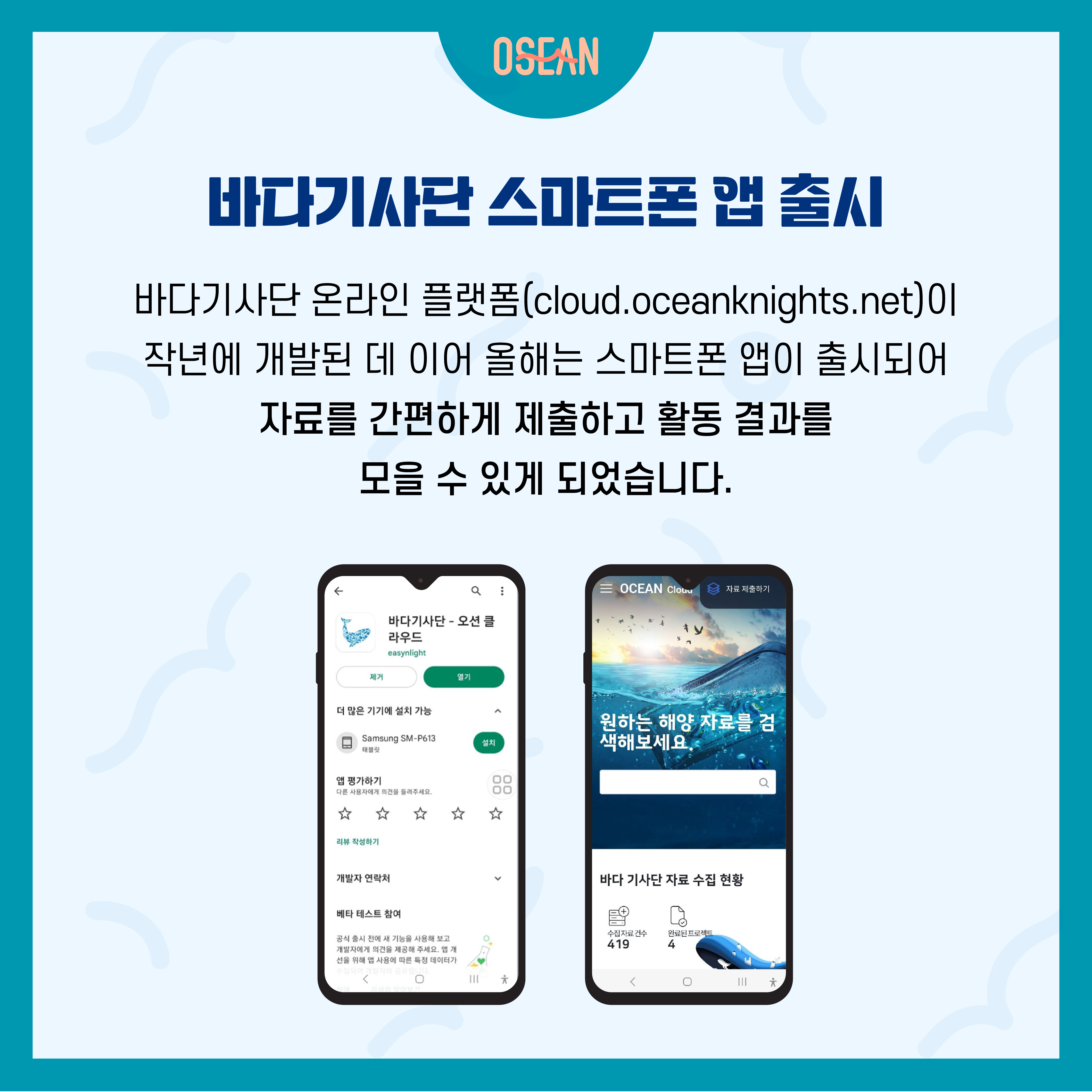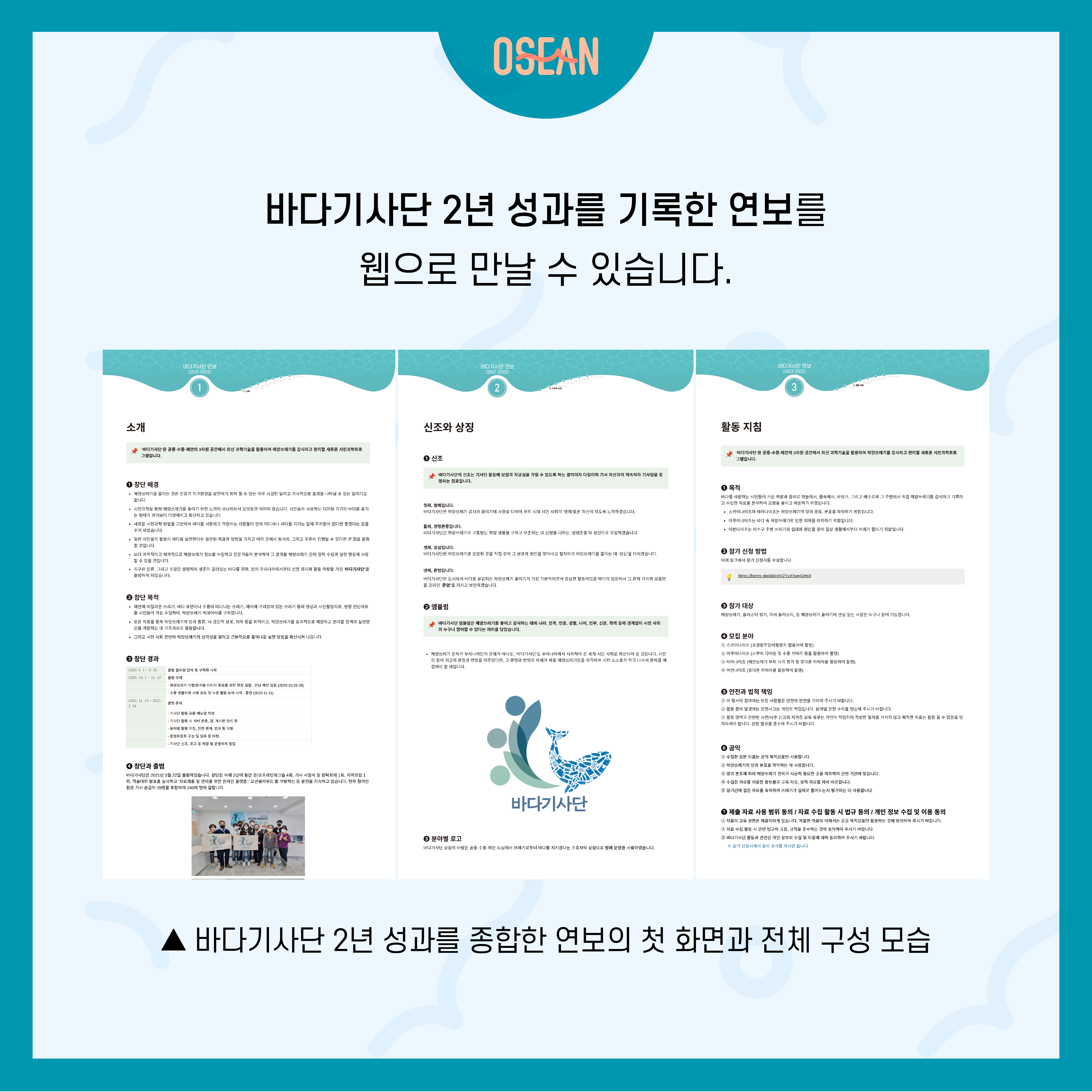 오션의 3차원 디지털 시민과학 프로그램인 바다기사단이 창단 후 3년차를 맞아 지난 2년의 연혁과 성과를 총 정리하여 연보를 발간하였다.