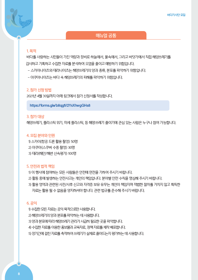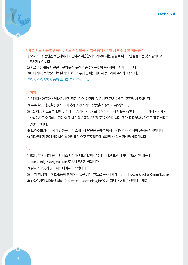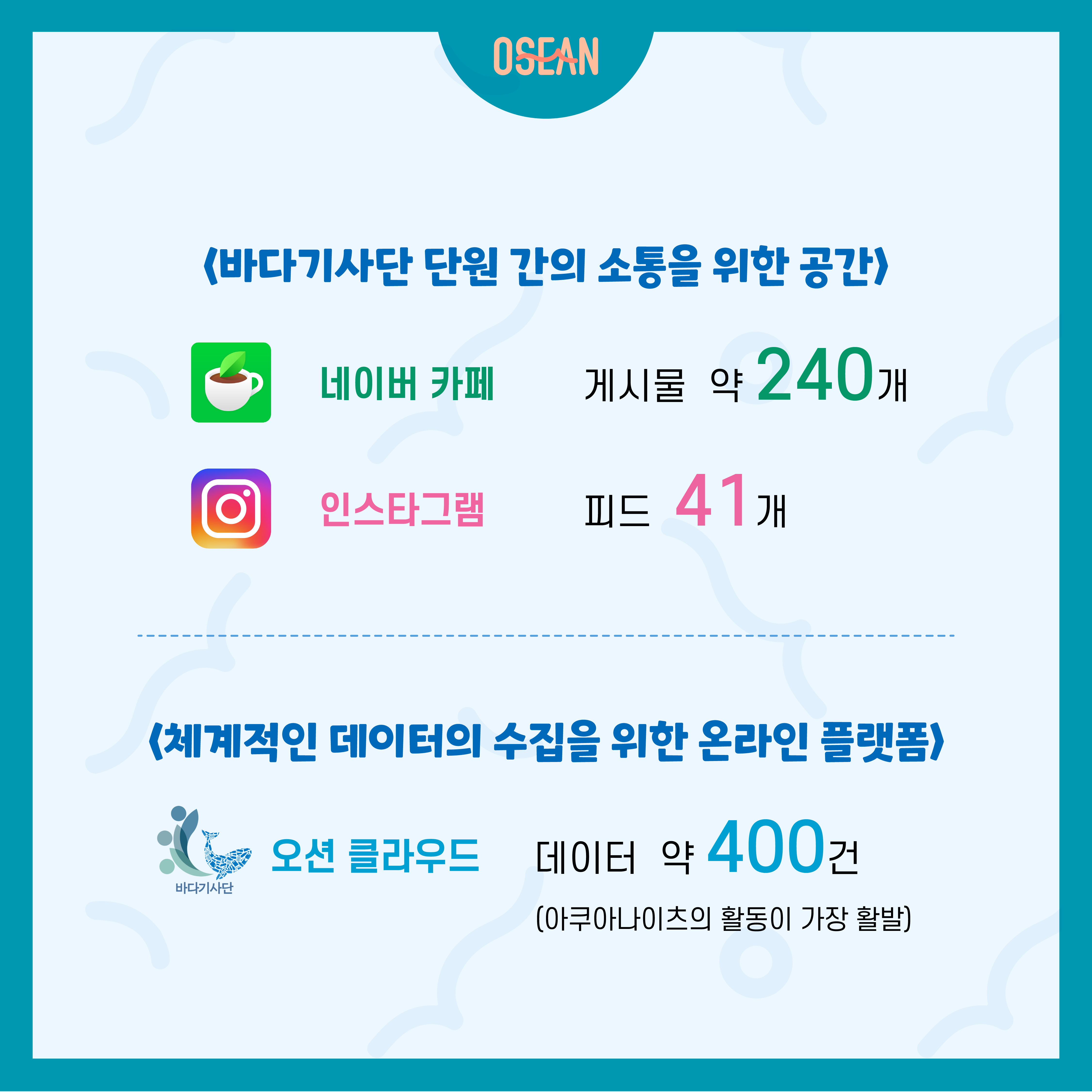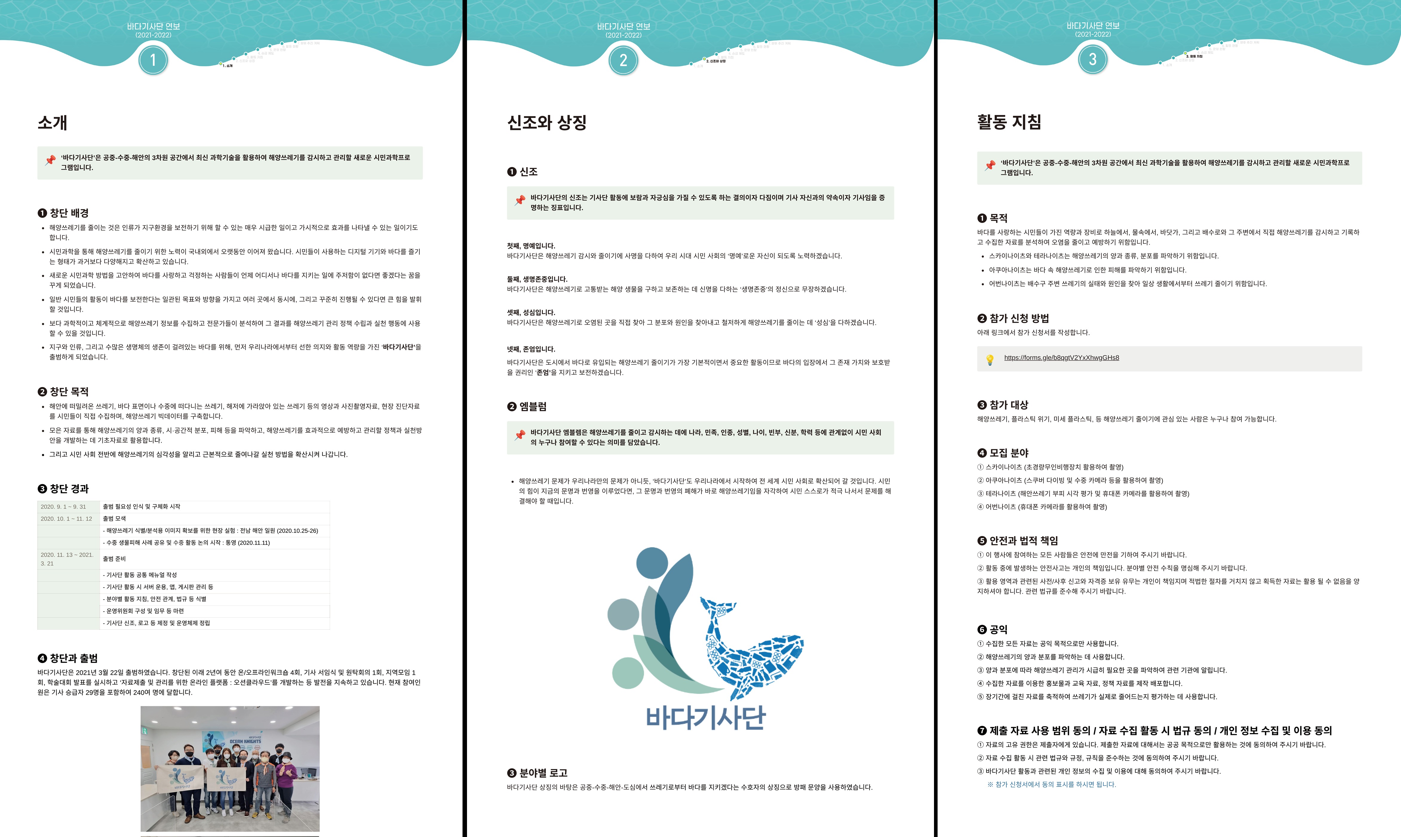 오션의 3차원 디지털 시민과학 프로그램인 바다기사단이 창단 후 3년차를 맞아 지난 2년의 연혁과 성과를 총 정리하여 연보를 발간하였다.