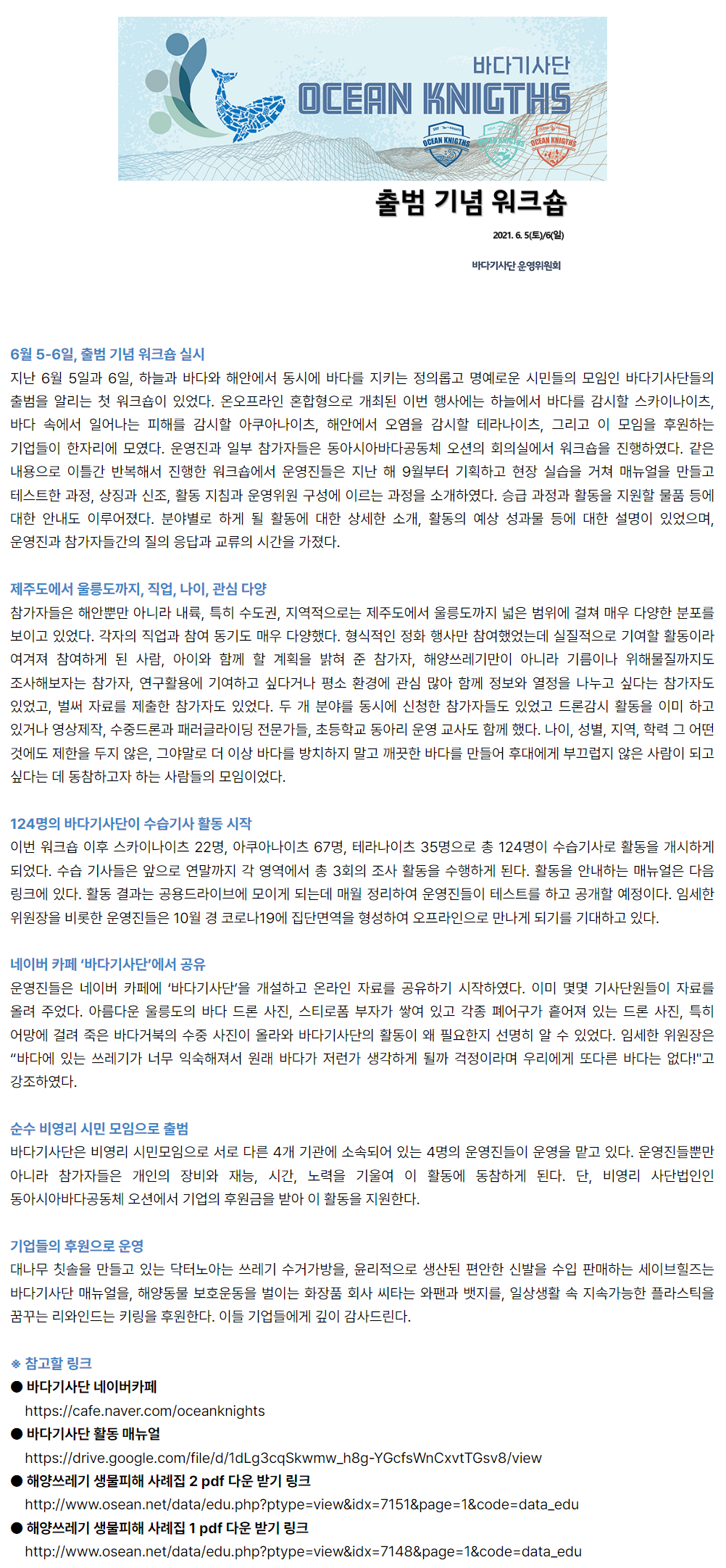 ◎ 더보기 : OSEAN, 2023 상반기 바다기사단 워크숍 개최 : (사)동아시아바다공동체 오션
