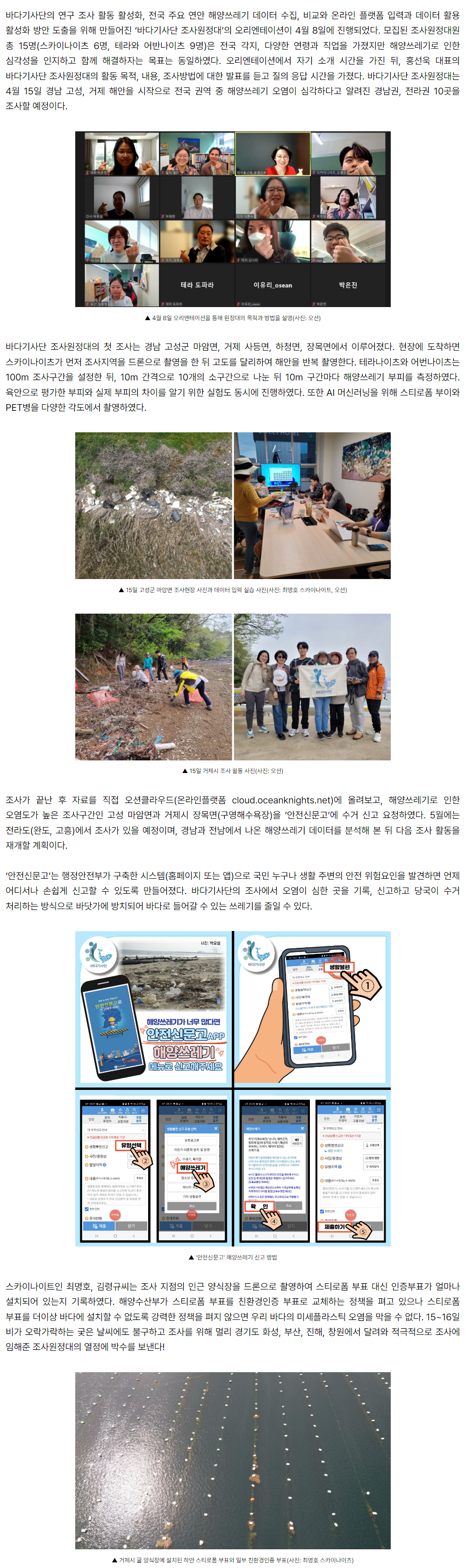 ◎ 더보기 : 하늘, 바다, 해안에서 뜻있는 시민들이 바다기사단 활동 시작 : (사)동아시아바다공동체 오션 (osean.net)