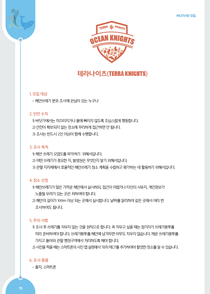 앞으로 바다기사단 내 많은 기사들이 적극적으로 활동하고, 이들이 제출한 데이터들이 소중한 자료로 활용되어 다양한 해양쓰레기 문제해결 가이드가 되기를 기대한다.